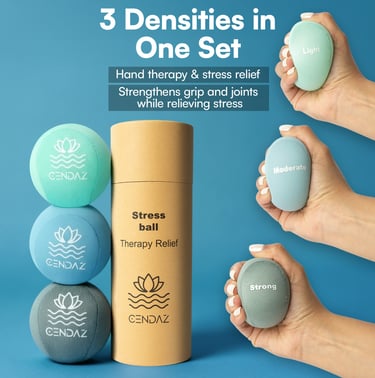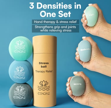 Relieve tension anytime, anywhere. This set of three stress balls offers light, medium, and firm resistance to help ease stress, improve focus, and provide simple, effective hand therapy.